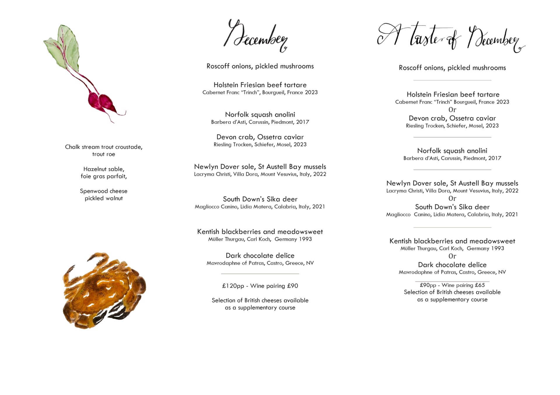 Includes: Chalk stream trout croustade, trout roe, chives.